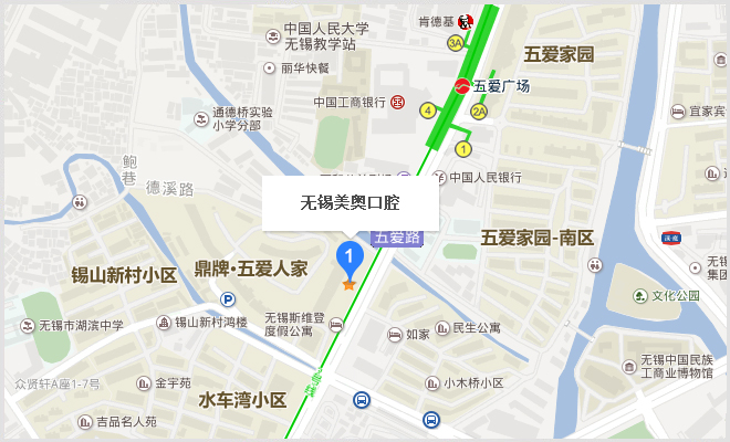 市内可自驾车到五爱路与德溪路交叉口,即可到达无锡美奥口腔